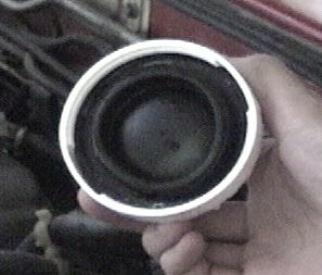 Mark at Meineke in Kingston ordered the brake fluid reservoir cap for me after the guy at the Mitsubishi dealer in Poughkeepsie told me it included the ring and diaphragm. When the part arrived, however, it turned out to be only the plastic cap. I shelled out another six bucks to Part Perfect for a GM master cylinder gasket, which I subsequently cut to fit inside the cap. This solution ultimately worked, although I paid more than I should have had to.