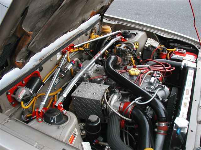 December 10, 2003 Engine bay, with newly installed strut brace from Shawn and Mike.