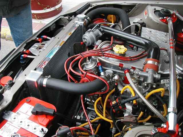 Engine bay, with newly installed strut brace from Shawn and Mike.